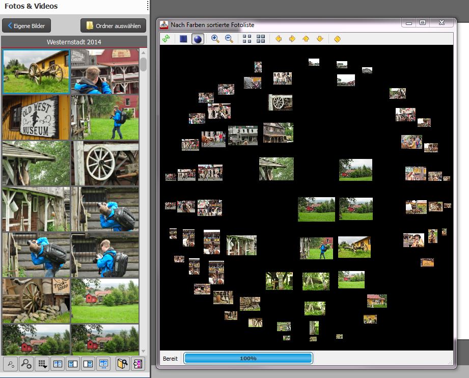 im Kontextmenü der Bildauswahl findest du die Funktion "Farbsortierung". Wenn es dir rein um die Sortierung geht, wird dir diese Funktion eine gute Hilfe sein.