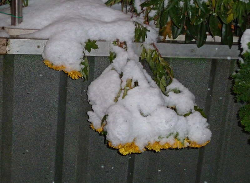 Da kam der Winter ziemlich plötzlich und einige Blumen trugen noch Blüten.