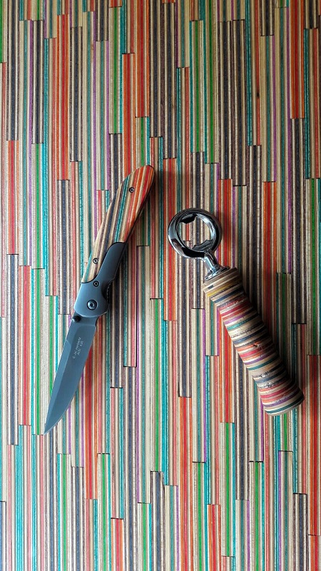 Re: Challenge 08/2018 • Immer mit dabei!ich habe natürlich auch immer die Kamera dabei und Akkus und Reisepass aber besonders speziell und schön sind die Sachen nicht...AUßER ....mein Taschenmesser und Flaschenöffner , die ich beide aus meinen alten Skateboards gebastelt habe.