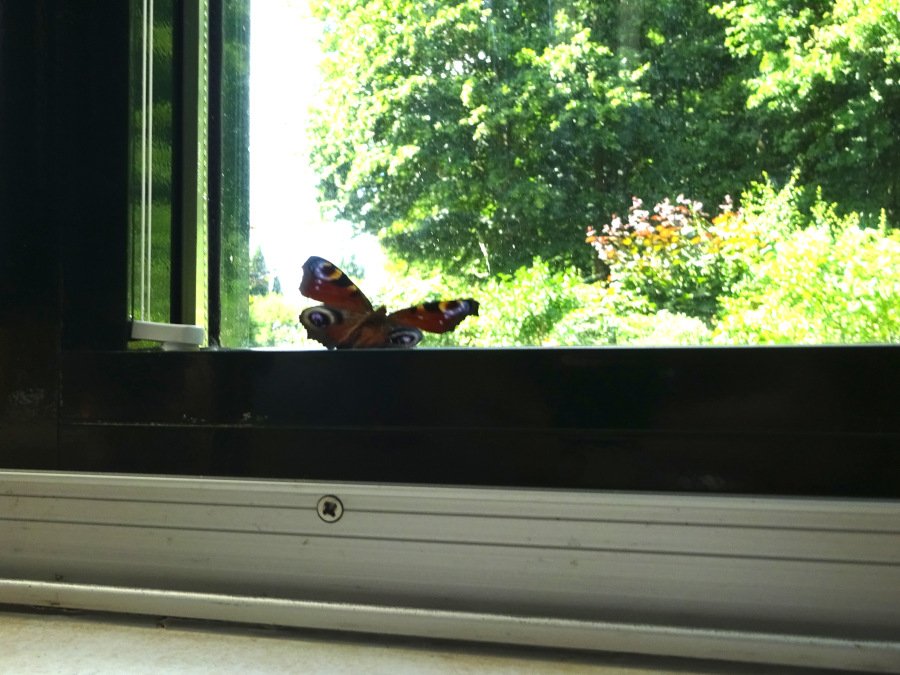 Re: Challenge 08/2020 • HausbesetzerDie Viecher sind sehr fotoscheu. Heute hat sich ein Schmetterling in unseren Wintergarten verirrt, saß in der unteren Ecke des bodentiefen Fensters hinter Heizung. Um ihn zu fotografieren, musste ich mich bäuchlings auf den Boden legen, die Kamera unter die Heizung halten und sozusagen im Blindflug den Auslöser drücken. Wahrscheinlich wäre das das lustigere Foto gewesen.