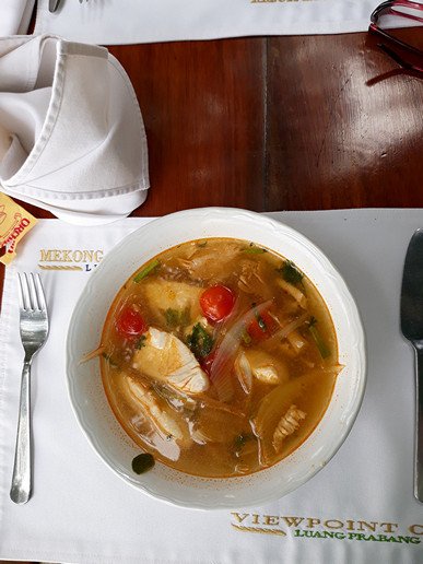 Hier ein super leichtes aber leckeres Essen aus Laos. Fischsuppe mit echtem Mekong-Fisch.