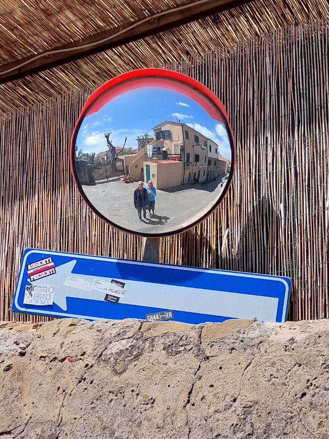 Selfie-Modus im Spiegel an der Straßenkreuzung