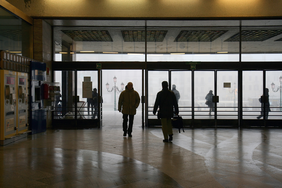 Wenn man mit dem Nachtzug nach Venedig fährt, kommt man frühmorgens um etwa 6.30 Uhr dort an. So einen schönen Sonnenaufgang hatten wir nicht immer. Wenn man Pech hat, kann der Blick aus dem Bahnhof S. Lucia in Richtung Canal Grande auch so aussehen: Liebe Grüße