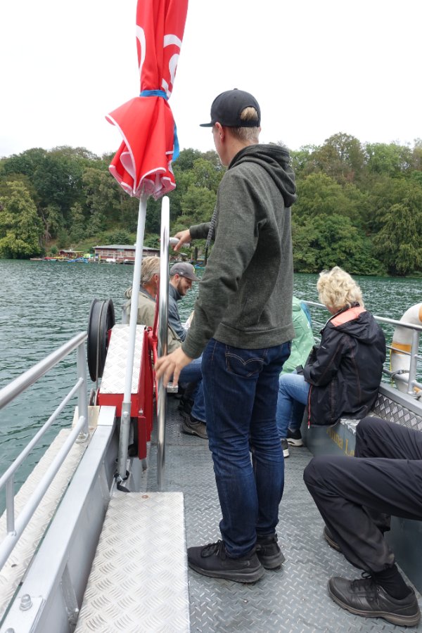 Die Fähre über den schmalen Luzin verkehrt mit vollem Körpereinsatz des Fährmanns. Es handelt sich um eine der letzten handbetriebenen Seilfähren in Europa, eine echte Rarität.