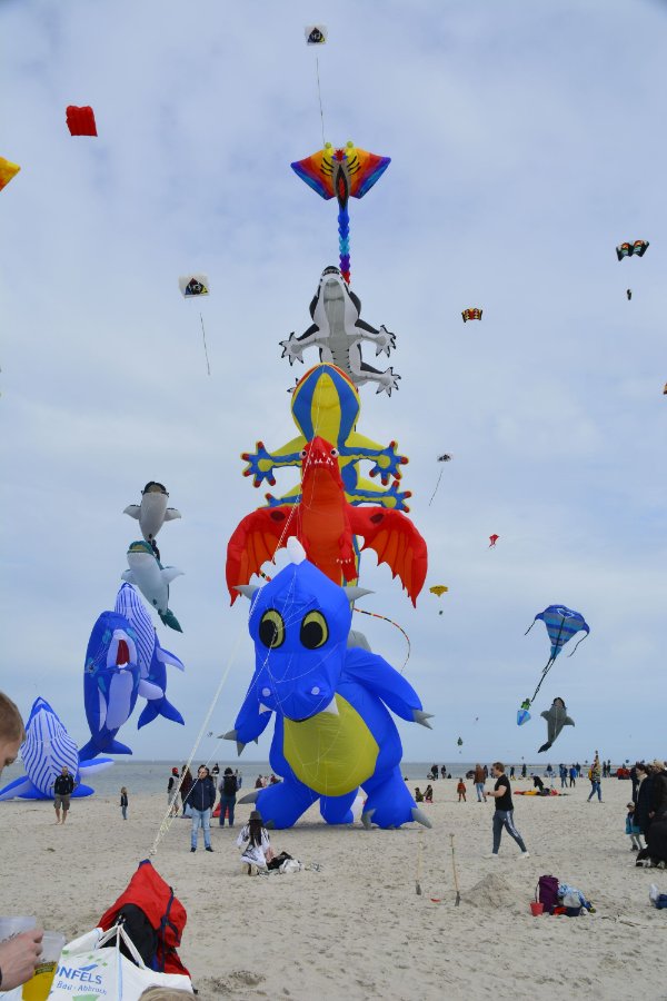 Drachenfest in Laboe. So einen Drachen zu halten ist schon eine sportliche Leistung.
