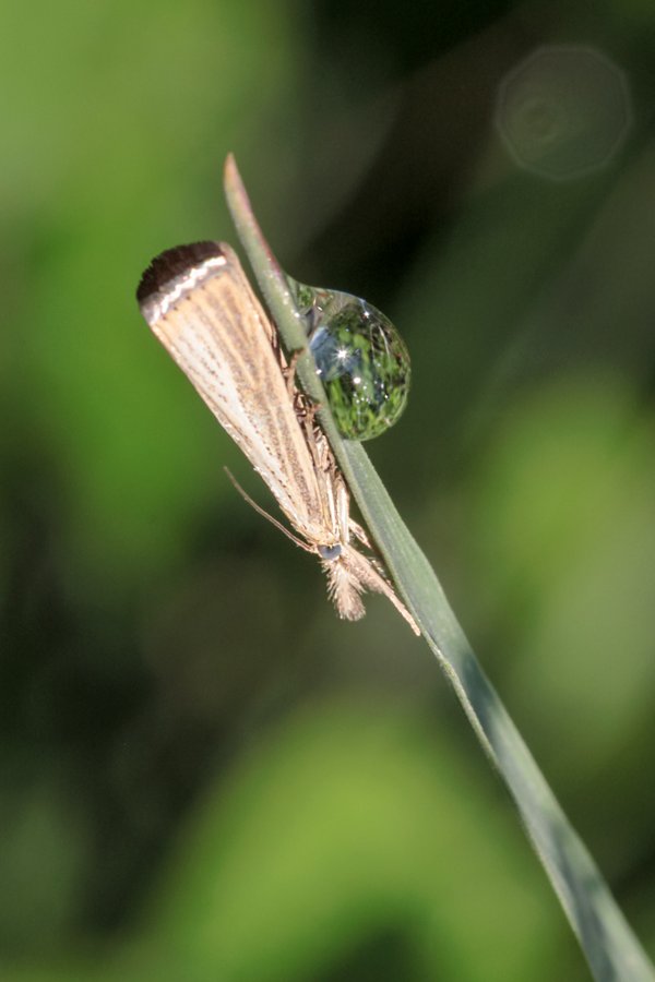 Re: CEWE Photo Award 2025 - Challenge: Close-Up & MakrofotografieEin Zünsler (Kleinschmetterling). Am Tautropfen kann man sich die "Größe" in etwa vorstellen.
