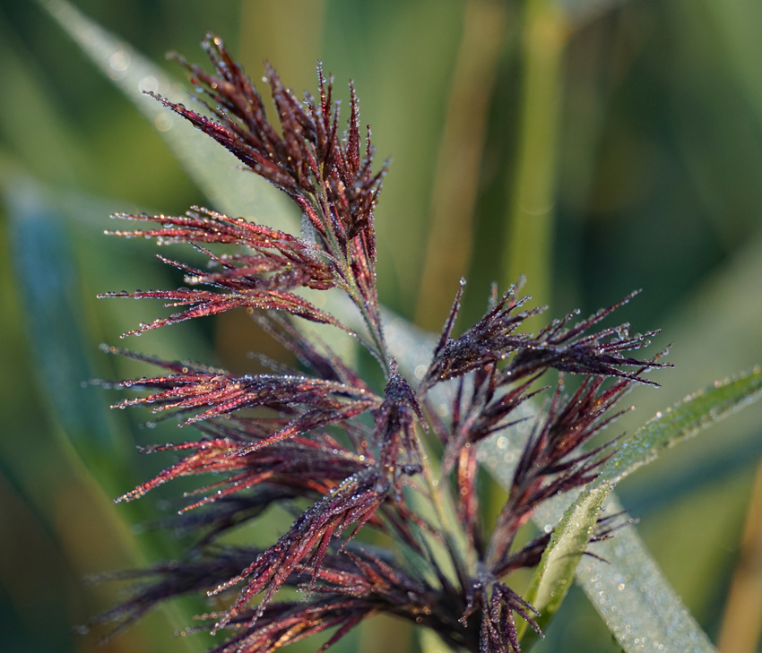 Re: Challenge 06/2018 • Quell des LebensFrühmorgens am Fluss Bure in den Norfolk Broads, Dunst über dem Wasser und Tautropfen in Reet und Spinnennetz.