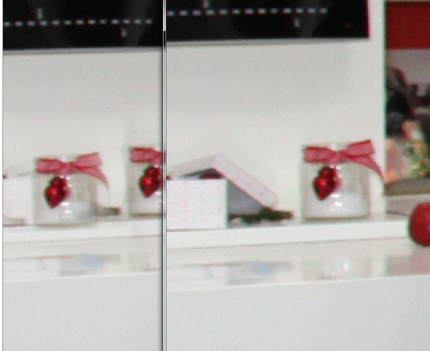 Offensichtlich wurde doch dieser Deckel entfernt (bzw. retuschiert) UND ein zusätzliches Teelichtglas (bzw. Geschenkpäckchen, wie einige sagen) ins Regal gestellt (bzw. geklont).