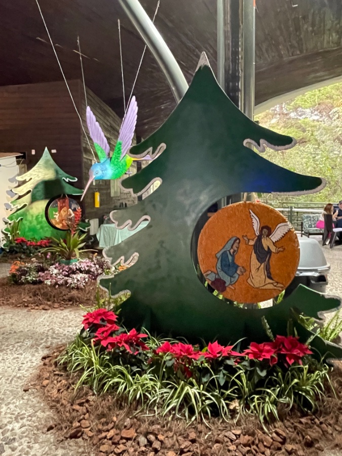 Re: Die Advents-Foto-Challenge 2024Auch aus der Ferne schaue ich gerne ins Forum und als ich die 2.Aufgabe der Advents-Challenge gelesen habe, dachte ich mir: „wunderbar, hier in Kolumbien gibt es jede Menge Weihnachtsdeko und überall stromern Hunde herum, da geht doch was!“ Leider hab ich es nicht geschafft, beides auf ein Foto zu bringen. Dafür habe ich heute bei Medellin diesen bunten Kolibri über einer Verkündigungsszene gesehen. Exotisch ist diese Beitrag bestimmt.