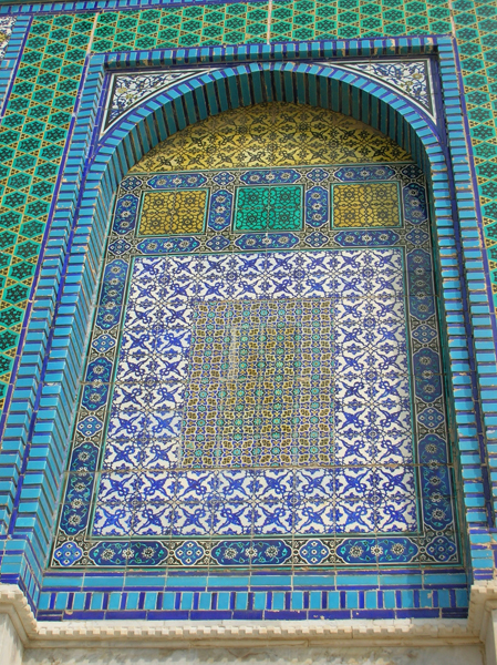 Re: Challenge 01/2014 • FarbenprachtDie Kacheln vom Felsendom, dem Wahrzeichen Jerusalems, sind sehr bunt. Hier nur kleine Ausschnitte des großen Gesamtkunstwerks. Im Sonnenlicht mit blauem Himmel und der goldenen Kuppel wirkt das einmalig. Die Fotos entstanden bei meiner 1. Israel-Reise 2009.
