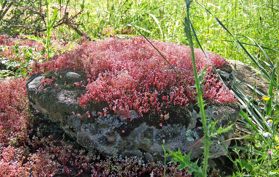 Re: Challenge 06/2019 • Rosen im AsphaltDiesen attraktiv rot leuchtenden Moos- oder Flechtenbewuchs haben wir auf Sardinien gesehen und zwar ausschließlich auf Steinen und felsigem Untergrund.