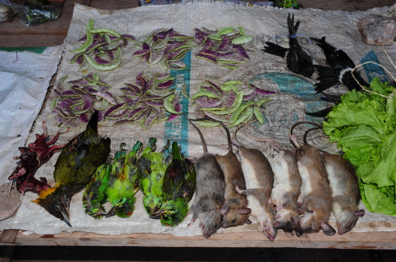 ... oder Nervenkitzel am Jahrmarkt für Käufer und Verkaufte ... Singvögel, Flughunde und Ratten zwischen frischem Salat und Bohnen? Werden wir nun alles zusammen servieren .. oder wie werden wir serviert?