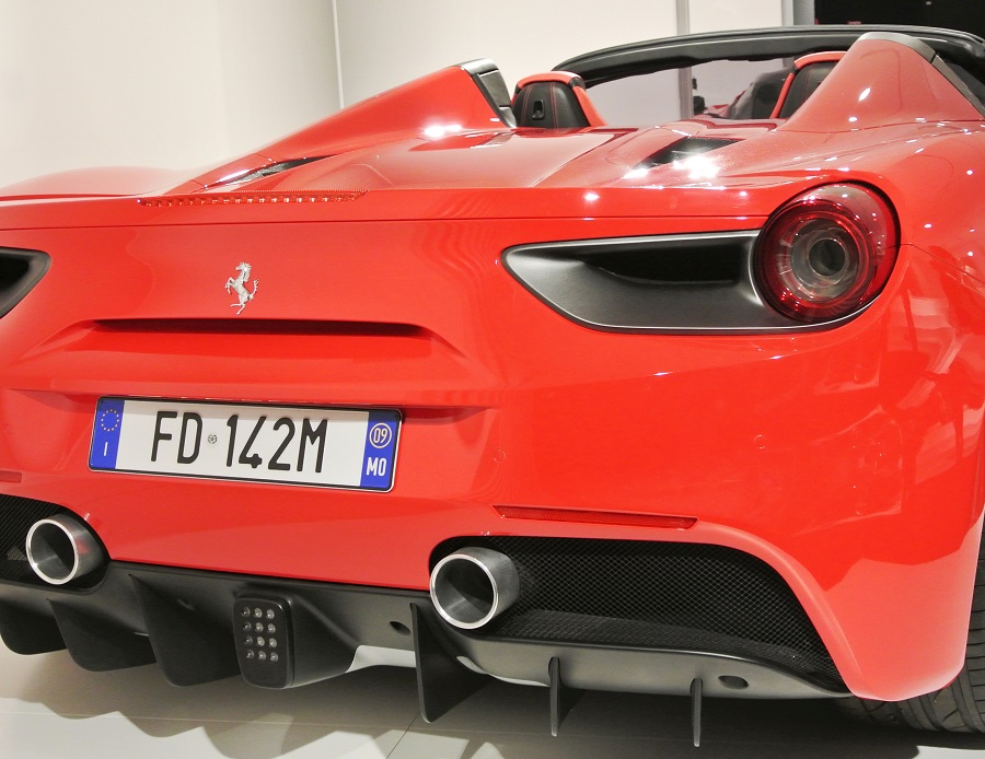 Bei einem Besuch entstandene Teilansichten von Ferraris im Ferrari-Museum in Maranello/Italien