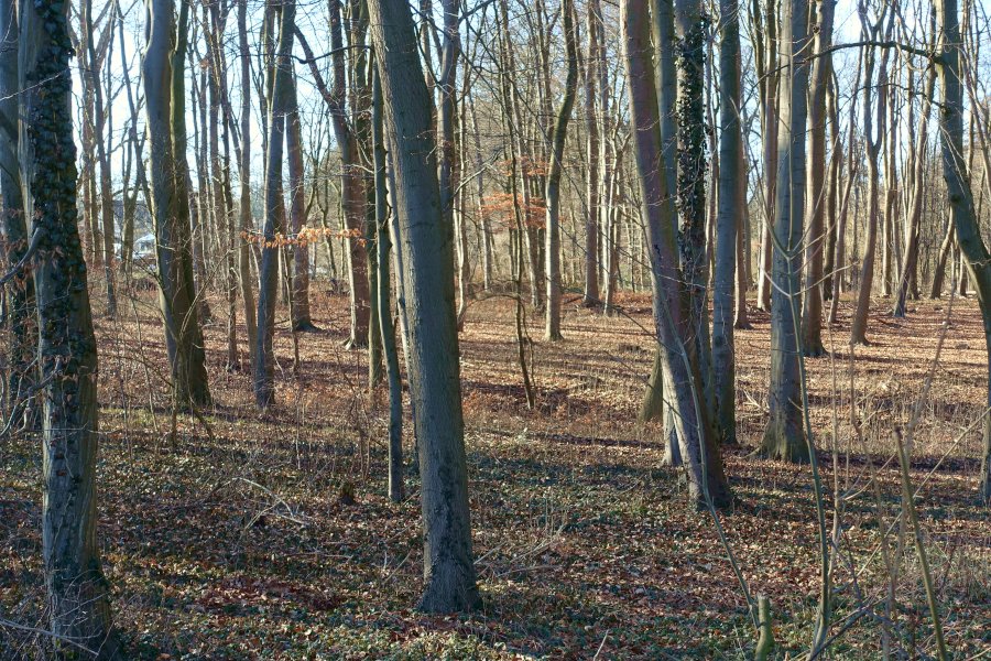Der Blick in den nebligen Wald am Morgen hat mich auch fasziniert, heute nachmittag dagegen der Blick in den sonnigen Wald.