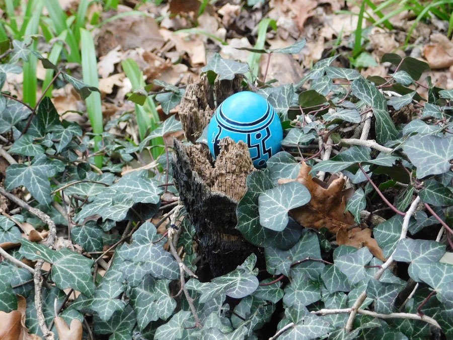 Beim morgendlichen Gang durch den Garten: da hat der Osterhase schon ein Ei versteckt.