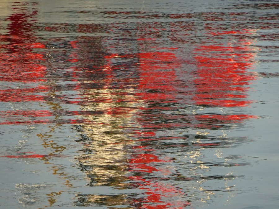 Einfach nur die Farben eines Bootes, die sich im Wasser spiegeln.