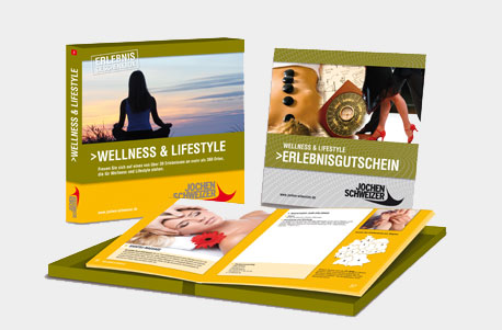 | Erlebnisgutschein: Wellness & Lifestyle Sie erhalten einen Gutschein für eines von über 30 Erlebnissen an mehr als 420 Erlebnisorten. Das Paket beinhaltet einen Erlebnis-Katalog mit vielen Infos zu den verschiedenen Erlebnissen. |