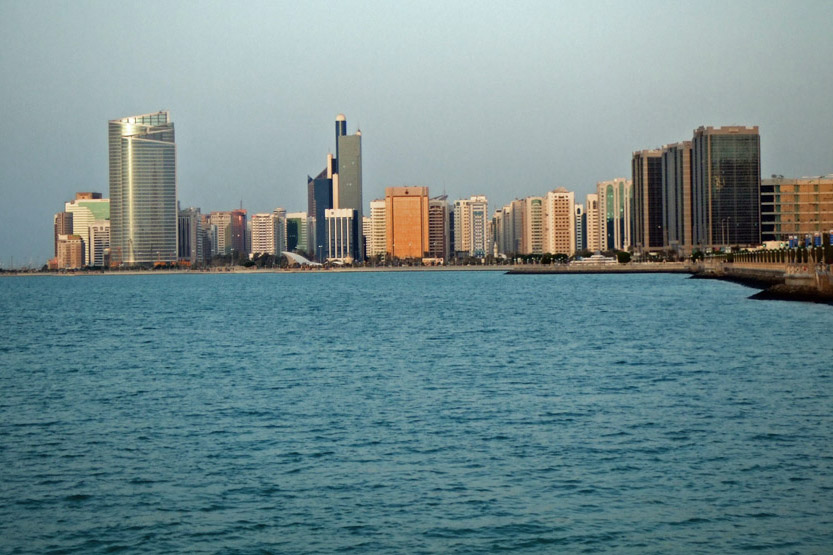Die Skyline von Abu Dhabi (2006) von der Uferpromenade aus gesehen