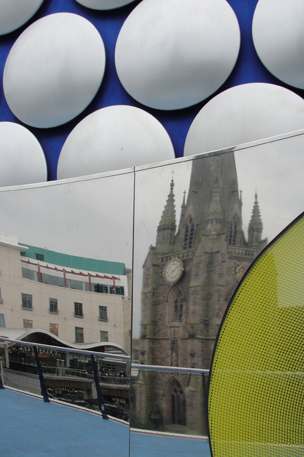 Birmingham, Siegelung der St Martin's Church in der Fassade des Kaufhauses Selfridges.