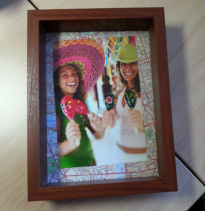 - einen Bilderrahmen und ein Foto (Da Sie aus Ihrer Karte ein Passepartout erstellen möchten, sollte Ihr Foto kleiner als Ihr Bilderrahmen sein)