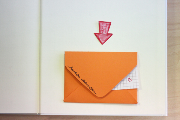 Nun können Sie den Umschlag beispielsweise noch beschriften oder auch daneben einen kleinen Hinweis hinterlassen.