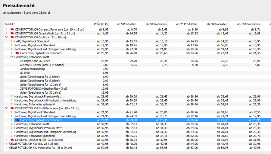 Mein vorhergehendes Buch war Groß Panorama Hardcover, Standard. Grundpreis 29,95 €. Welche Fotoqualität verbirgt sich nun hinter Standard? Vielen Dank für eine Antwort! Bettina Weise