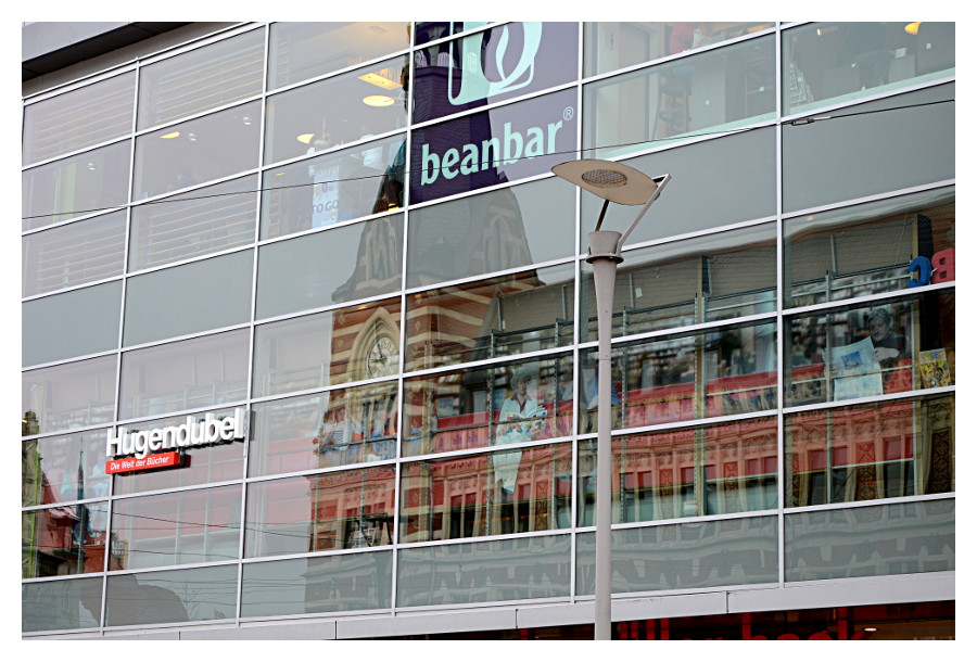 1) Das Schaufenster vom Oberpollinger in der Fußgängerzone liefert zu den Bildern, die sich durch die Spiegelungen ergeben auch gleich noch einen Rahmen dazu.