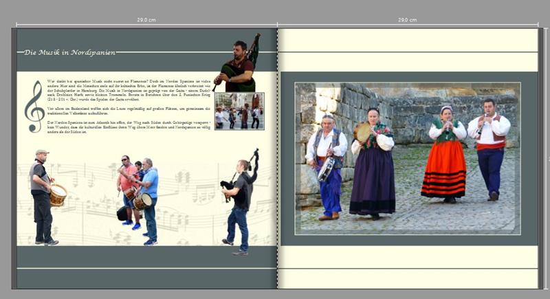 ich kann es nicht genau erkennen. Ich sehe, dass Du eine Schrift mit Serifen für den Grundtext gewählt hast. Ist das wirklich die cremona regular? Egal wie sie heißt, die Schrift sieht etwas "mopsig" und recht "wichtig" aus. Sie könnte auch in einem Lexikon verwendet werden. Die geschwungene Schrift der Überschrift scheint mir nicht die Segoe Script zu sein. Egal wie, der hier verwendete Font ist ebenfalls sehr auffällig und passt m.E. in Kombination nicht zum Charakter der Buchschrift. Auch ist der Schriftausgleich miserabel. Dafür kannst Du nix. Manche sind Freefonts sind einfach mies. Frag Dich: Wie soll der Grundtext wirken? Können die Informationen auch frischer und leichter präsentiert werden? Müssen es wirklich zwei verschiedene Schriften sein? Könnten Deine persönlichen Anmerkungen z.B. in der selben Schrift jedoch kursiv oder als kleiner Marginaltext am Rand stehen? siehe http://www.cewe-community.com/forum/vie ... 430#p99430 Zum Layout ist mir aufgefallen: – Mir gefallen der Notenschlüssel und die Muschel als Eye-Catcher gut. – Die Textzeilen sind sehr lang. Lesbarer wird es, wenn Du den Text auf zwei Blöcke aufteilst. Das Layout mit den zwei Bildern nebeneinander gibt es her. – Die Überschriften stehen weder mittig im Layout noch linksbündig zu den Bildern oder dem Grundtext. – Nach Bilbao wäre ein "echter" Gedankenstrich besser (alt 0150). Lieber Gruß, pitty