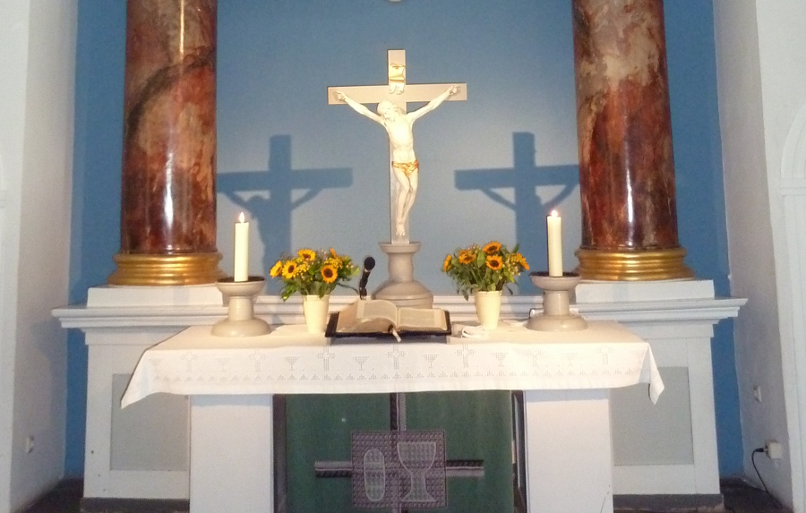 Re: Challenge 08/2016 • SchattenspieleIn der Kirche in Altenwerder, dem letzten verbliebenen Gebäude dieses Ortes, der der Hamburger Hafenerweiterung weichen musste, scheint die Sonne auf den Altar.
