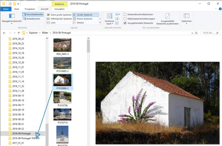Aber mir ist noch was eingefallen. Für das Vorsortieren habe ich vielleicht ein bisschen umständlich gedacht. Mein Mann sortiert seine Fotos nämlich immer direkt im Explorer, das funktioniert total gut. Dazu stellt er die Exploreransicht auf Vorschaufenster und zieht/kopiert direkt die gewünschten Fotos mit gedrückter Steuerung-Taste in einen Ordner, der z.B.den Zusatz Top100 oder so hat. Die Beurteilung ist so viel besser als bei den Thumbnails und das Kopieren geht total schnell. liebe Grüße