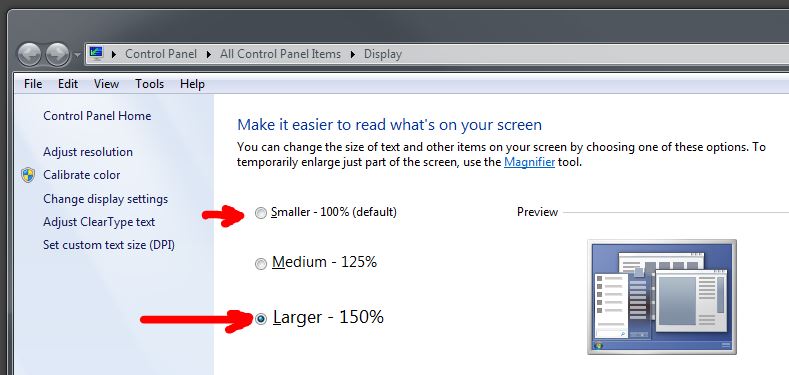 Aber es bringt mir nichts. Wenn ich die Textgröße von150% auf 100% zurücksetze, werden die cewe-Texte zwar nicht mehr abgeschnitten, aber alle Texte (nicht nur cewe) sind so klein, dass ich gar nix mehr lesen kann.