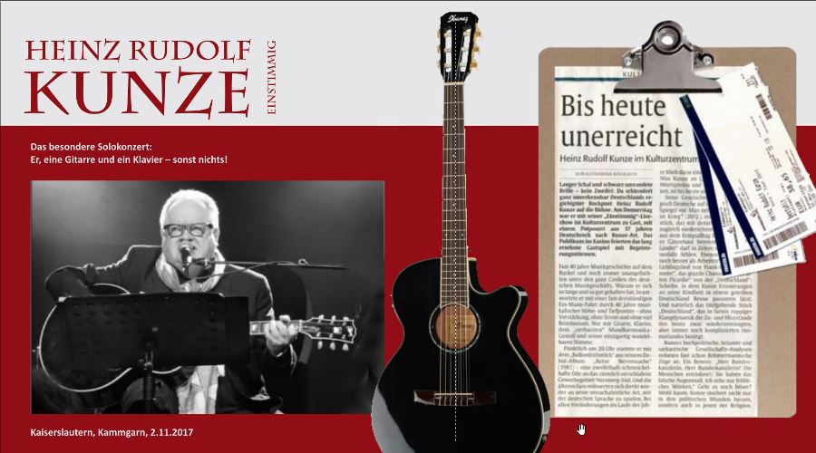 Prima, prima. Ich würde auch nichts drehen.Das Neigen des Clipboard, hat mir irgendwie nicht gefallen... Lg Eventuell wäre es noch besser, - das Clipboard um so viel kleiner zu machen, dass es unten bündig mit dem HR-Kunze-Foto ist. - die senkrechte Gitarre wieder nach rechts rücken. - das Clipboard auch nach rechts rücken, sodass der weiße Hintergrund durchgängig ist. (die Karten dürfen noch weiter in den Anschnitt und rechts aus dem Buch ragen. - die senkrechte Gitarre darf auch über dem Clipboard liegen. Ohne die Einzelteile kann ich das leider nicht nachbauen, um es zu zeigen. Lieber Gruß, pitty