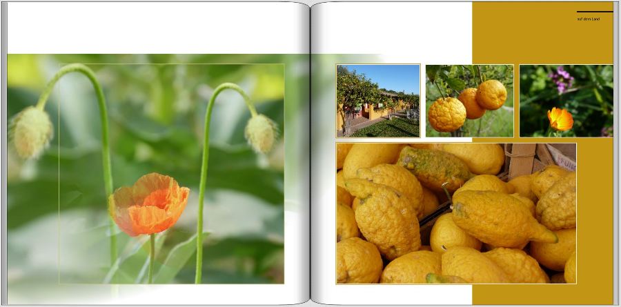 Re: 16. Dezember | Kategorie: KreativesNach vielen Versuchen hat sich dieses Layout zu meinen Lieblingen herauskristallisiert, hier am Beispiel unserer Reise nach Sizilien 2011. Ich wandele es seitdem immer wieder gerne unter Beibehaltung des Gestaltungsrasters ab: