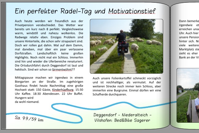 ich bin relativ unentschlossen, bezüglich der ersten Innenseite fürs Buch zu meinem Donauradweg.