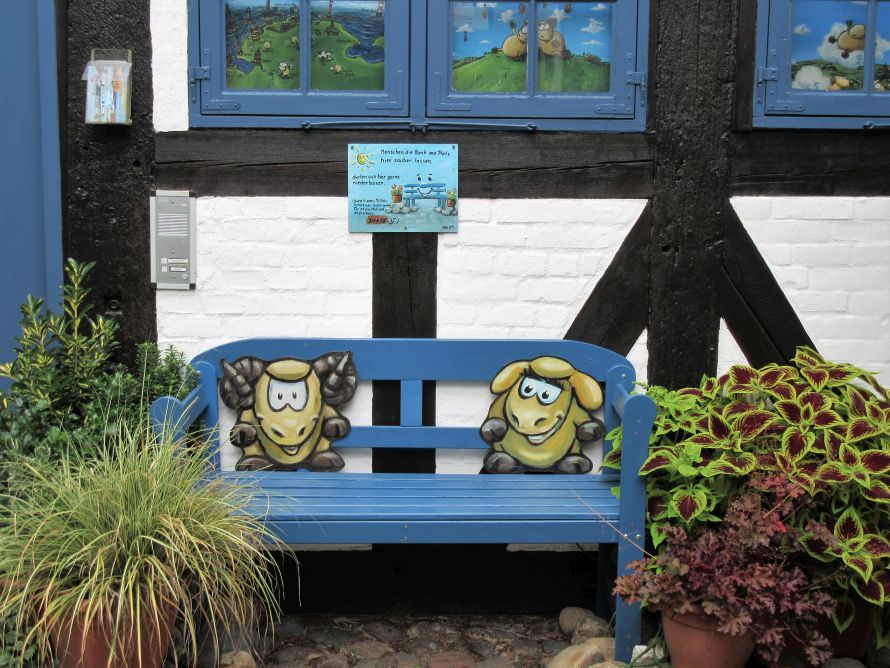 Auch auf diese Bank in einem der Flensburger Kaufmannshöfe getrauten wir uns nicht zu setzen - selbst das Schaf schien entschlossen, sie notfalls heftigst zu verteidigen! Mit freundlichen Grüßen
