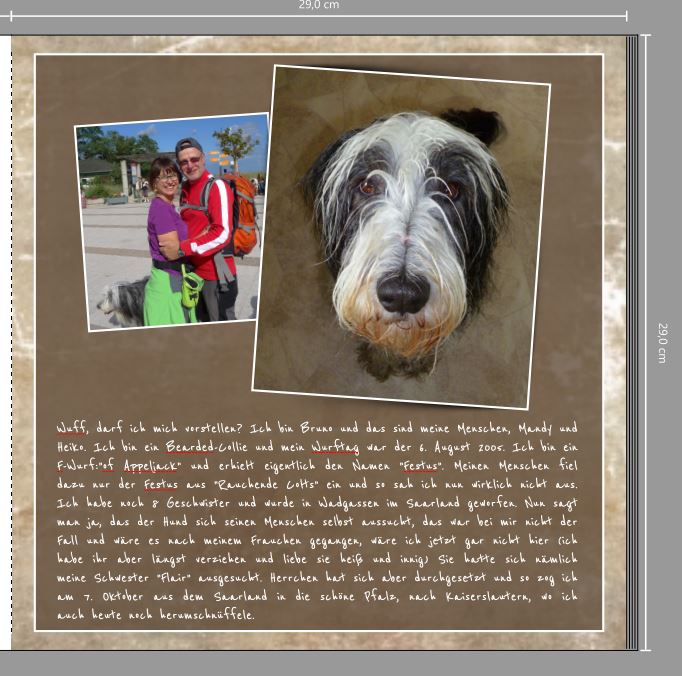 Wir laden Sie herzlich ein, die neue CEWE Community mit integriertem Forum zu entdecken und künftig zu nutzen. Das bisherige Forum, in dem Sie sich gerade befinden, steht nur noch bis Ende 2025 für neue Beiträge zur Verfügung und wird ab dem kommenden Jahr 2026 nur noch lesend zugänglich sein. Informieren und registrieren Sie sich jetzt in der neuen CEWE Community – wir freuen uns auf Sie! BrunoHeute Morgen beim bürsten unseres Hundes, kam mir die Idee, ein Buch von ihm mit seiner Sicht der Dinge zu erstellen. Viele Bücher werden erst nach dem Tod des Haustieres erstellt, das will ich nicht. Er wird dieses Jahre 13 Jahre und hat viel zu erzählen. Ich habe tausend Gedanken und Ideen im Kopf, die ich schon Stichpunktartig aufgeschrieben habe. Nun faszinieren mich ja seit neuesten die sogenannten "Weißen Bücher" die ohne viel Schnickschnack auskommen, hmmmm, das ist gar nicht so einfach