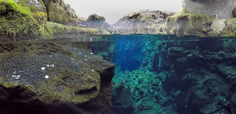 Zu sehen ist die Kontinentalspalte , halb unter/über Wasser.