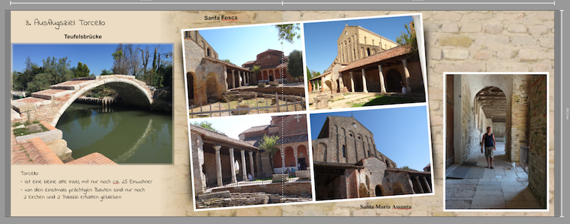 ich finde es toll, dass Du uns Deine Seiten zeigst und um Unterstützung bittest. Die Wandlungen, die durch die Tipps entstanden sind, sind grandios. Die Torcello-Seite gefällt mir schon viel, viel besser. Ich möchte Dir mein Bauchgefühl zu dieser Seite schreiben: