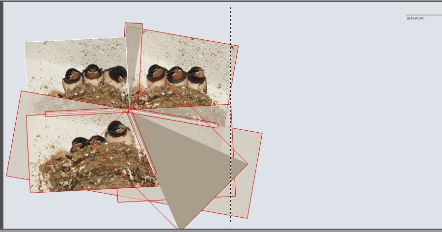 Für unsere Rauchschwalben-Familie habe ich Formen mit einfarbigen Bildern, Transparenzen und Überlagerungen erstellt.