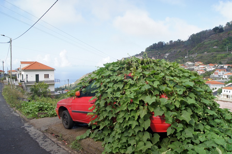Re: Challenge 06/2019 • Rosen im AsphaltMit diesem Auto, das dem Grün als Wucherhilfe dient, ist auch schon lange niemand mehr gefahren. Gesehen und fotografiert auf Madeira.