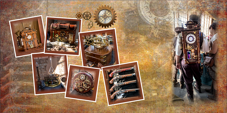 schön, von dir zu lesen. Deine Gestaltung passt super zum Steampunk. Ich würde auch gern mehr davon sehen, bitte Ich hätte noch einen Vorschlag für deinen dritten Screenshot: Leider verändern diese Büttenrahmen ja total die Form, wenn das Format nicht mehr passt. Wie fändest du es, die beiden Frauen in einen gemeinsamen quadratischen Rahmen in der Größe des rechten Bildes zu setzen. Vielleicht mit einem verbindenden einfarbigen, teiltransparenten Bild im Hintergrund. Das könnte ich mir ohnehin gut vorstellen bei den Fotos mit Maske im Rahmen, so wie bei deinem letzten Screenshot. Wenn du die Transparenz der Hintergrundbilder in der Fotoschau reduzierst, kannst du auch die Rahmen aus Masken und Rahmen drauf anwenden, ohne dass die selbst transparent werden. Ganz viel Spaß weiter mit deinen tollen Fotos. Liebe Grüße liebe Grüße