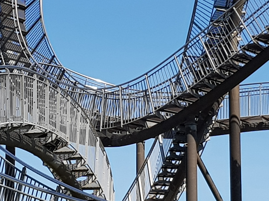 Re: Challenge 04/2020 • StadtgesichtAuch ich bin erneut mit dem Rad unterwegs gewesen: Tiger & Turtle, eine einer Achterbahn nachempfundene Großskulptur im Duisburger Süden. Bei dem schönen Wetter hätte sich der "richtige" Fotoapparat angeboten, zumal z.Zt. wegen der fehlenden Abstandmöglichkeiten keiner hinauf darf. Aber es war ein spontaner Schlenker, also "nur" Handyfotos.