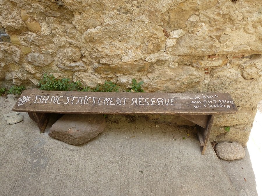 Re: Challenge 06/2020 • AuszeitDiese Sitzbank in Saint-Guilhem-le-Desert (Okzitanien, Frankreich) ist laut Aufschrift "STRIKT RESERVIERT für Leute, die Lust haben, sich zu setzen".