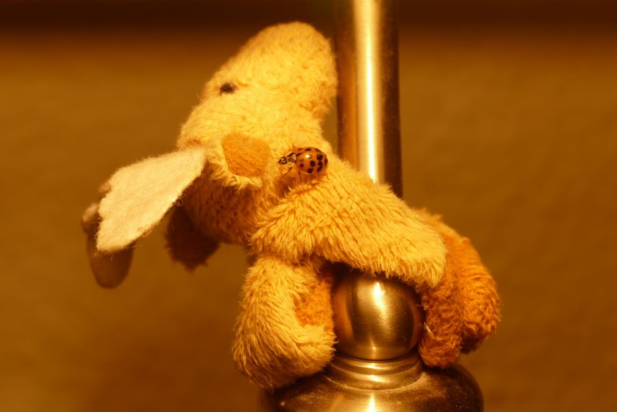 Hier landete ein Käfer am "Klettertier" der Schreibtischlampe.