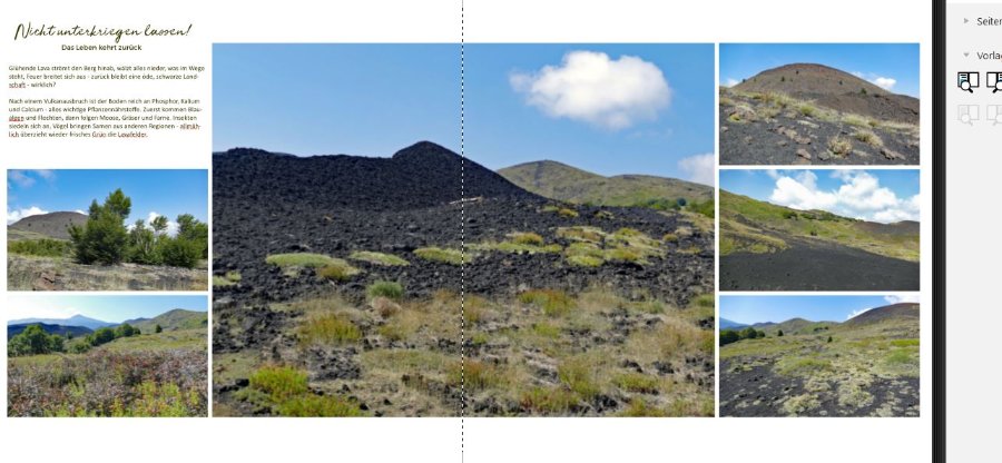 Ich ergänze in solchen Fällen gerne ein paar textliche Fakten z. B. wie oft bricht der Ätna aus, wann brach er zuletzt aus, wie hoch ist er etc. Evtl. zeigst Du uns ja das Ergebnis. Gruß DSL-schnell