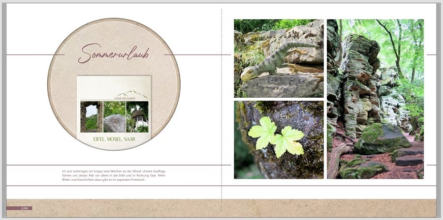 der Beitrag wird derzeit überall angezeigt und das werde ich gleich ändern. Bekommen Sie keinen Schrecken, der Wettbewerb läuft wie geplant bis Ende Januar. In der kommenden Woche startet bereits unser diesjähriges X-MAS Special und das möchten wir während der Laufzeit global ankündigen. Neugierig? Merken Sie sich den 27.11 Sylke Re: Gewinnspiel: Mein Jahr!Hier kommt die zweite Gestaltungsvariante für mein Jahrbuch und die, die ich final wohl auch tatsächlich verwenden werde. Mein wiederkehrendes Element ist hier der immer gleiche Kartonage-Hintergrund, der außerhalb der Fußzeile auf immer andere Weise durch das Weiß hindurchblitzt. Die Idee, die "großen Urlaubsbücher" im Jahrbuch anzuteasern, habe ich mir irgendwann mal von Regenbogen (Sternenstaub) geklaut.