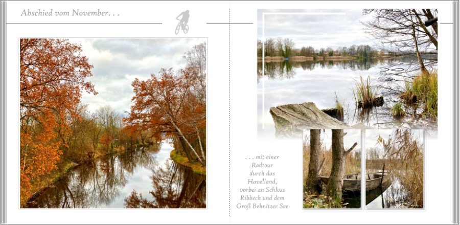 Mit meinen Jahrbüchern hinke ich immer hinterher, da bewundere ich echt Silberdistel, Kompliment! Mein letztes fertiggestelltes Jahrbuch ist von 2016. Als ich dieses gerade geöffnet habe, hab ich lauter leere Seiten angezeigt bekommen, muss erstmal schauen, wie ich das in den Griff bekomme. Daher ein paar Seiten aus dem 1. Halbjahr 2015. Falls das nicht o.k. ist bitte löschen. Jahrbücher gestalte ich fast ausschließlich jetzt um diese Zeit um den Jahreswechsel, so gesehen, steht eigentlich das 2017er auf der to-do-Liste. Vielleicht schaffe ich es ja tatsächlich noch, hier die ersten Seiten einstellen zu können. Meine Jahrbücher sind mittlerweile gestalterisch eher sparsam, früher habe ich mehr mit Hintergründen gearbeitet und es sind hauptsächlich die Reisen und Ausflüge eines Jahres, die dort verewigt werden.