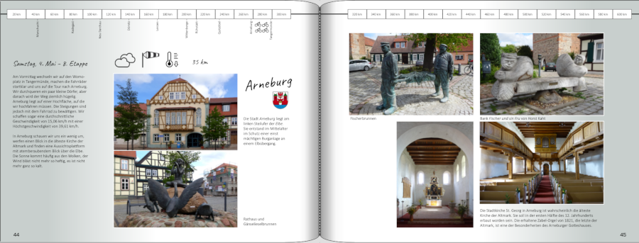 Das ist ein wunderbares Thema C:winki: , meine meisten Bücher sind eine Art Tagebuch. Hier ein Beispiel unserer Elbe-Radtour aus dem Jahr 2019.