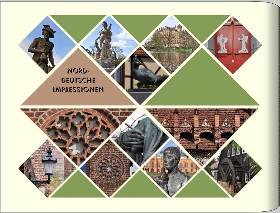 Re: 16. Dezember | Kategorie: SoftwareEin Beispiel für meine Kapiteltrennblätter zum Vorjahresurlaub: Cliparts als Streifen für den Ortsnamen, als Hintergrund für die Collage und als Seitenhintergrund.