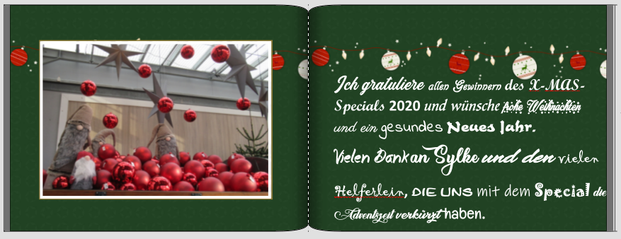 Spica Re: 18. Dezember | Kategorie: KreativesDamit die Kreationen, die übers Jahr und vor allem während des XMAS-Specials entstehen, nicht auf meiner Festplatte versauern, bündele ich sie gern in einer Jahressammlung, die ich auch drucken lasse. Normalerweise verwende ich in meinen Fotobüchern 2-3 Schriftarten. In der Sammlung sind es naturgemäß immer deutlich mehr. Damit ich später auf die Schnelle sehe, mit welchen Schriften ich gearbeitet habe, welches Lieblinge sind, die sich über die Jahre halten, und welche Neuentdeckungen es gibt, kommt auf die letzte Seite immer eine entsprechende Übersicht. So wird sie wahrscheinlich heuer aussehen:
